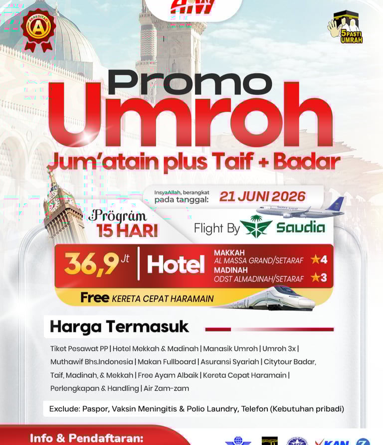 Bersama Alhijaz, perjalanan ibadah jadi lebih tenang & terjamin, karena tanggal keberangkatan pasti.